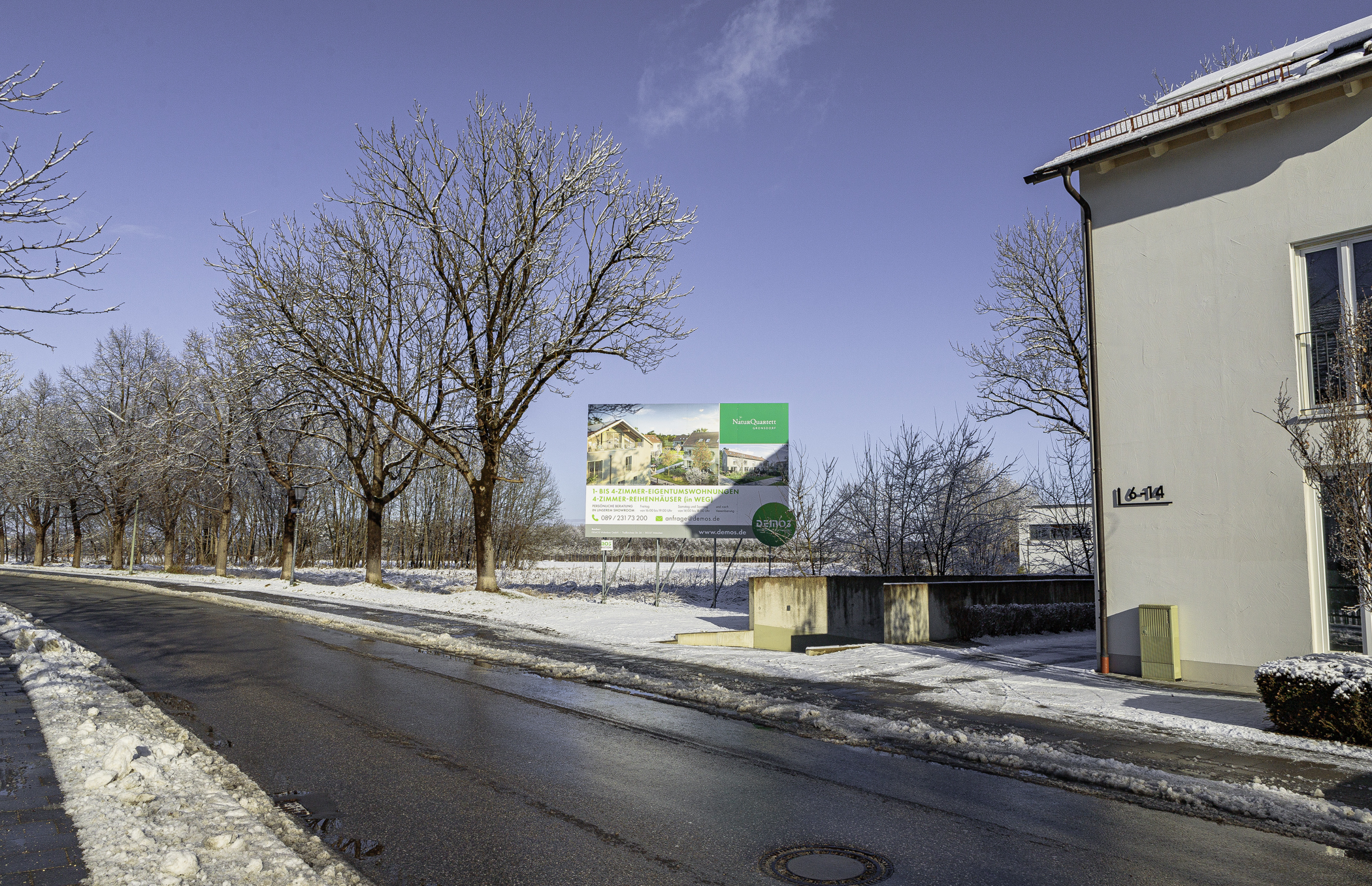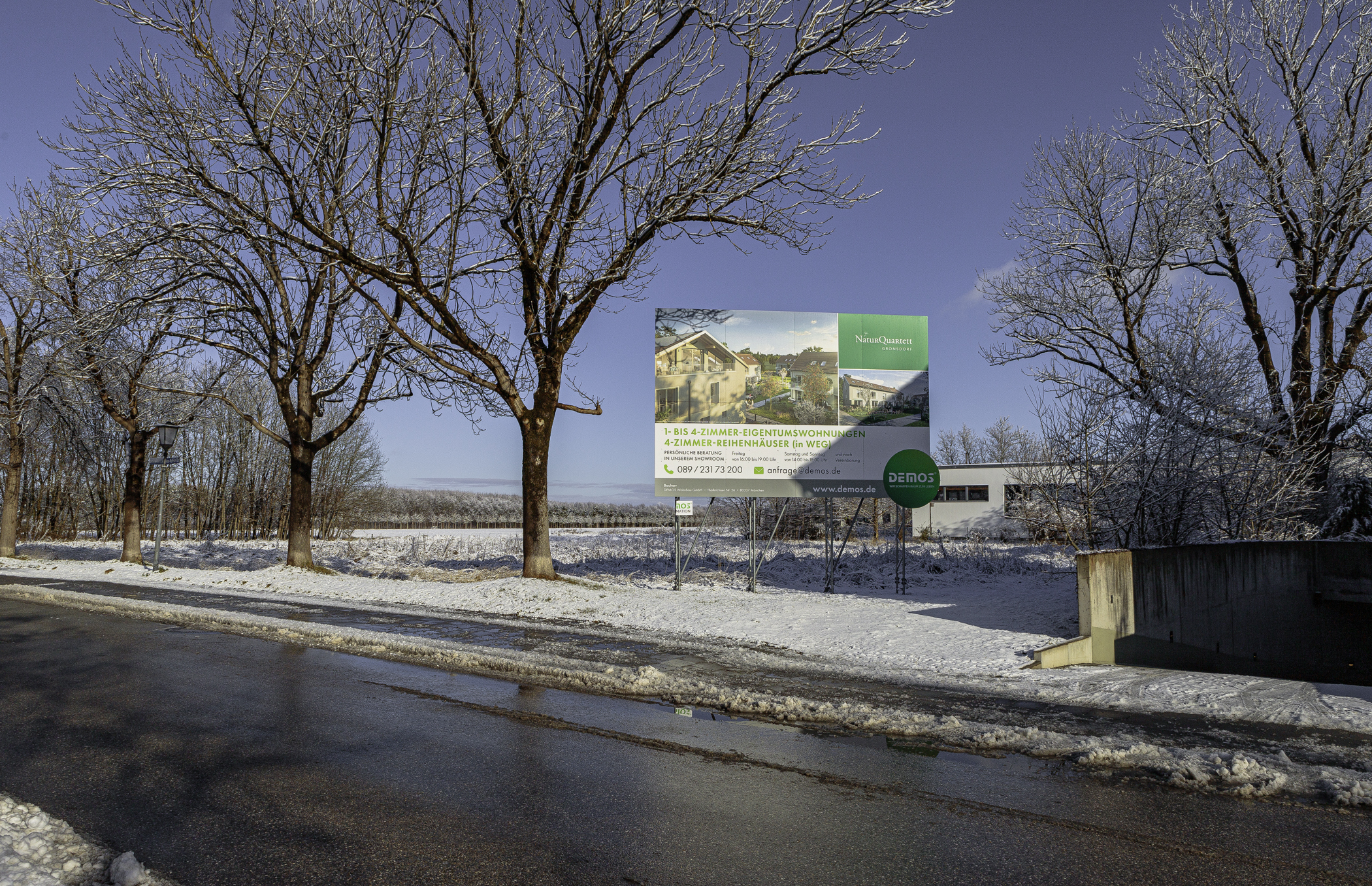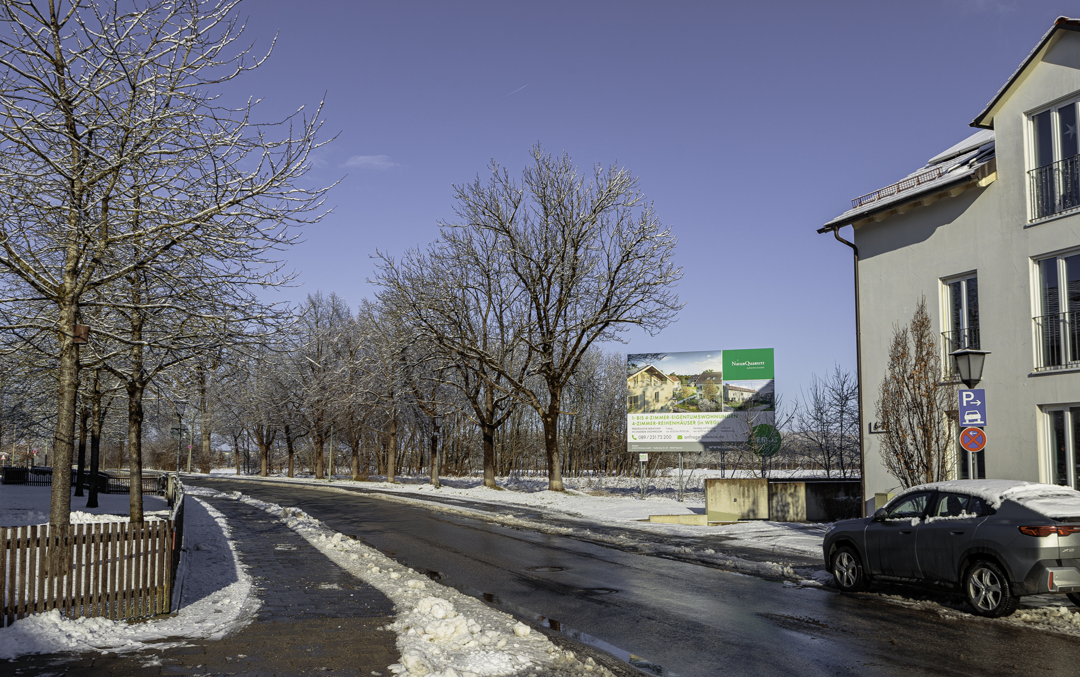 Aktuelle Bilder von dem Bauplatz der DEMOS. Direkt hinter dem Riemer See liegt Gronsdorf. Er ist ein Ortsteil der Gemeinde Haar und liegt ca. 1.000 Meter von der S-Bahn-Station Gronsdorf entfernt. In dieser schönen Gegend werden von der DEMOS 30 Eigentumswohnungen und 5 Reihenhäuser errichtet.