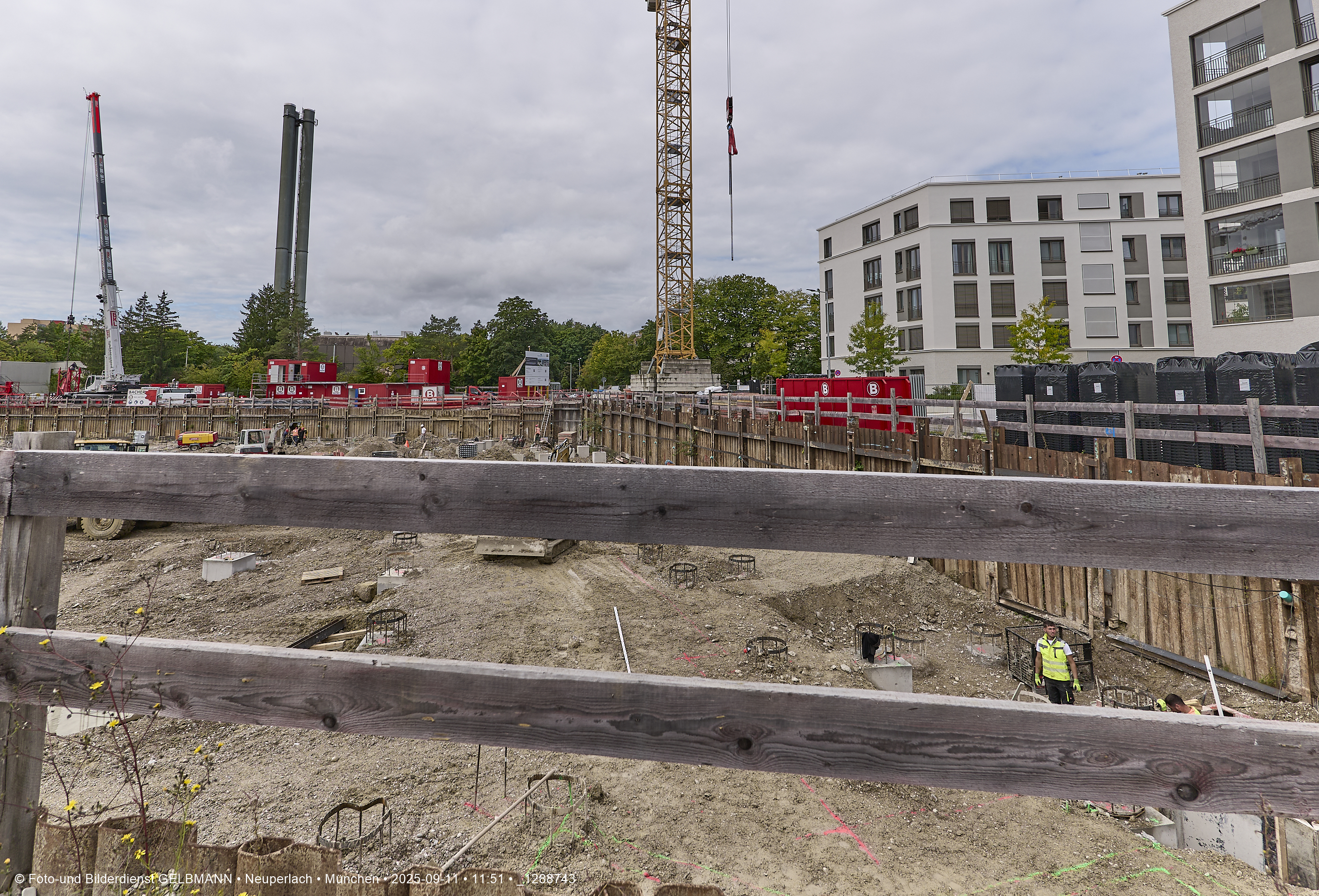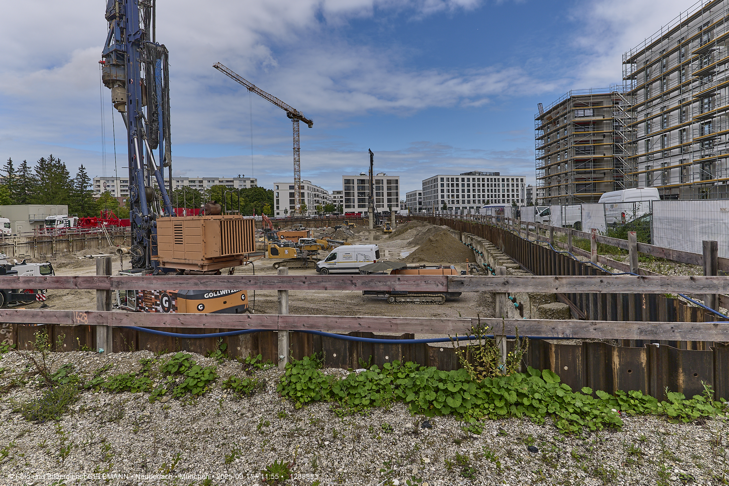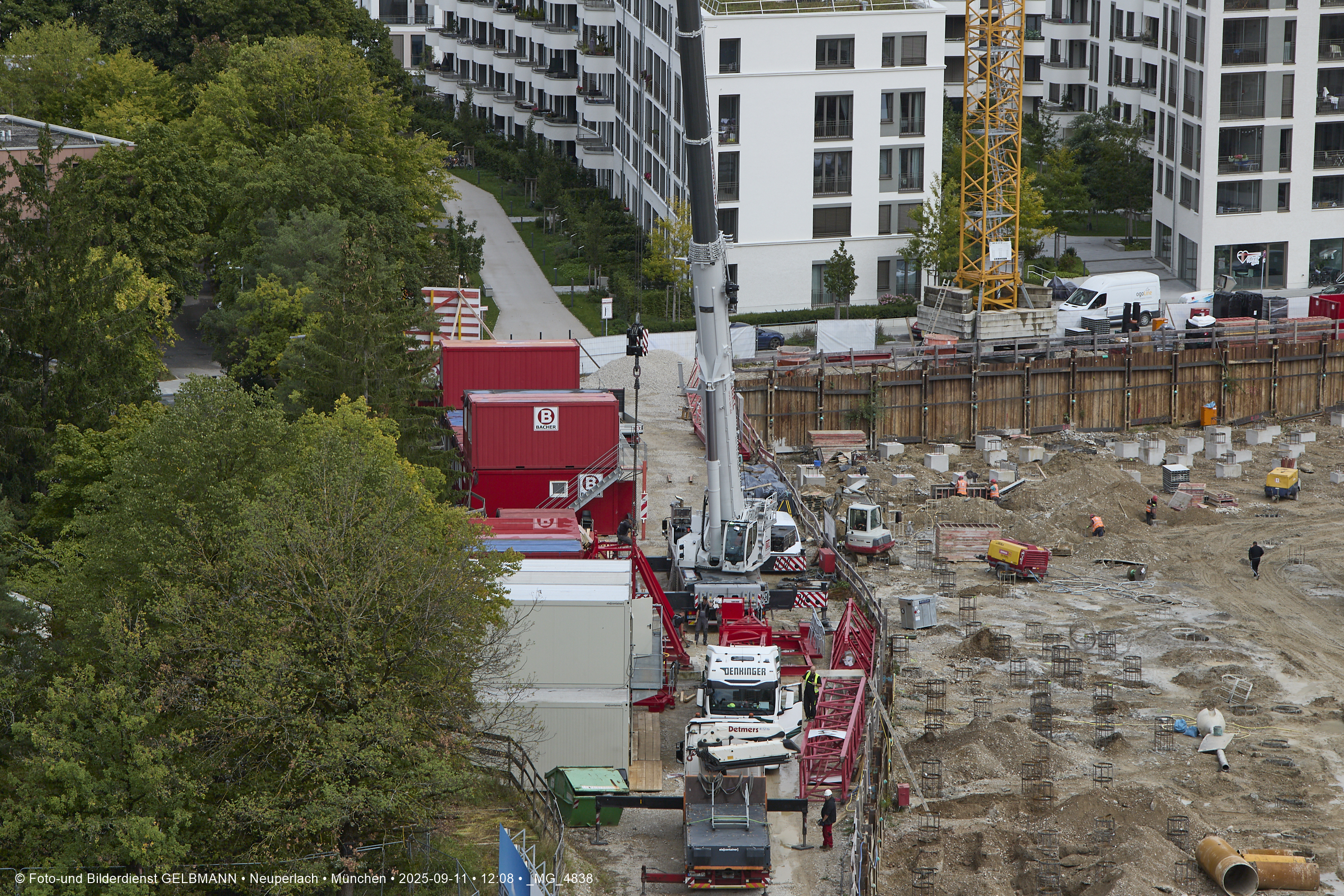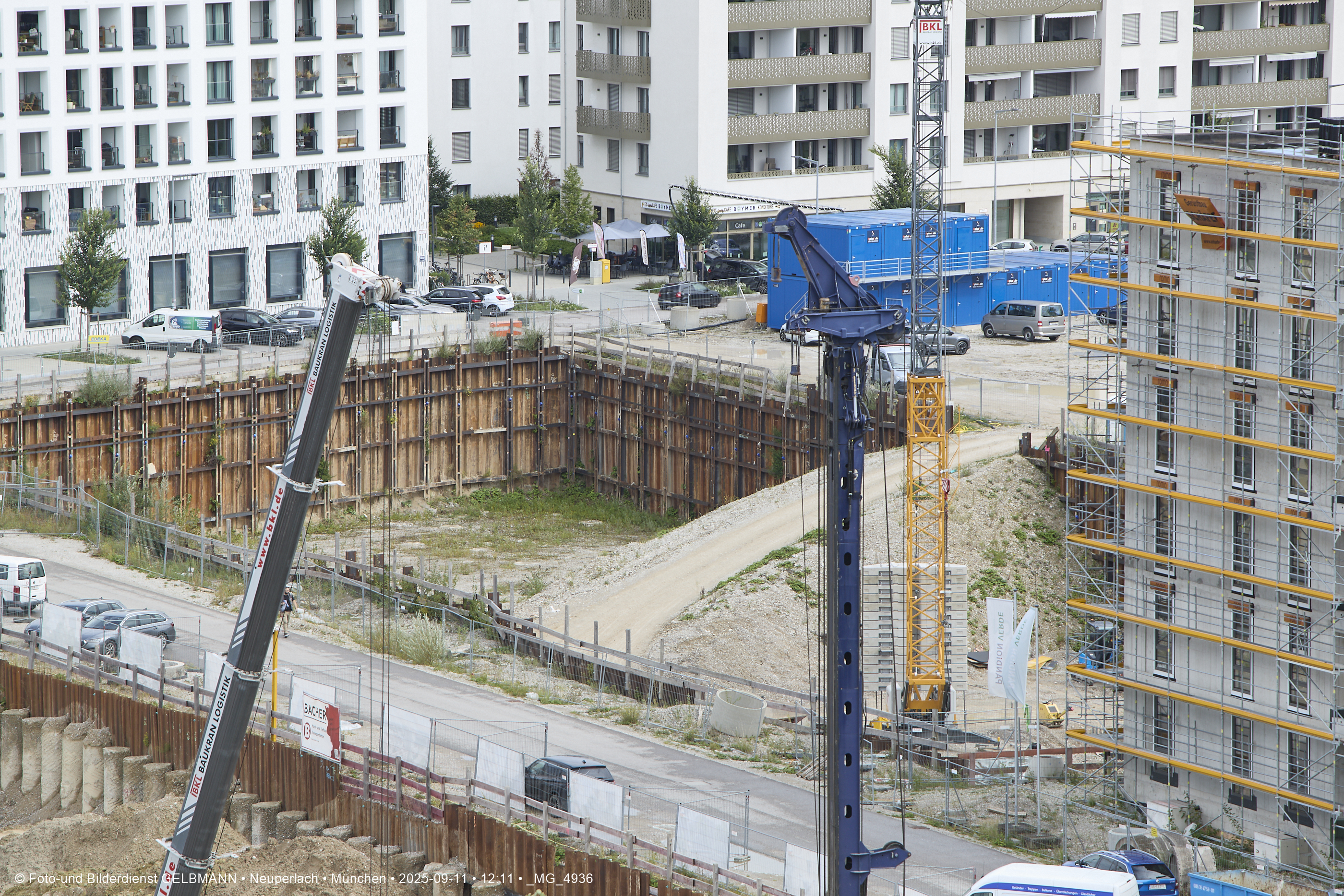 Ein dritter Kran wird an er großen Baugrube des Bauträgers, BayernHeim, errichtet. Mit weit über 100% wird in dieser Baugrube gebaut.