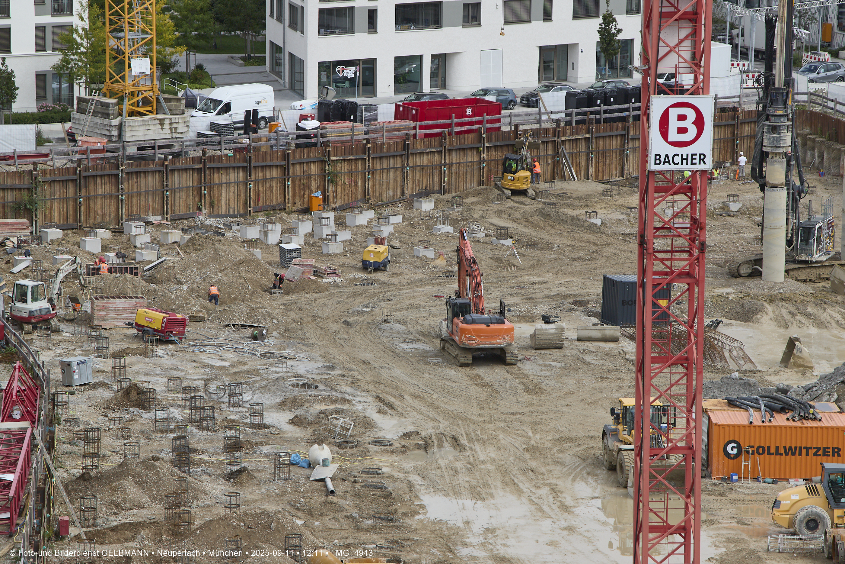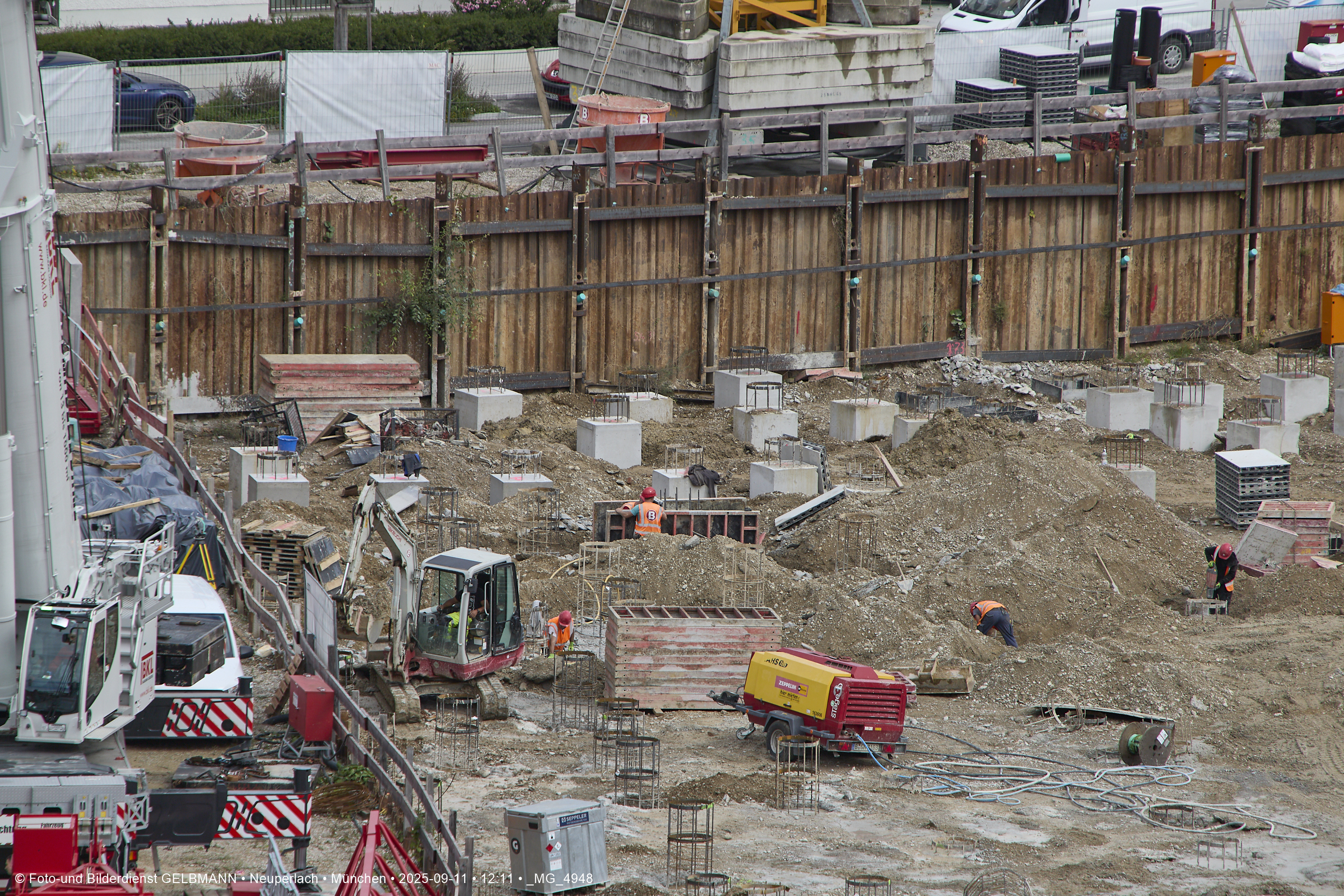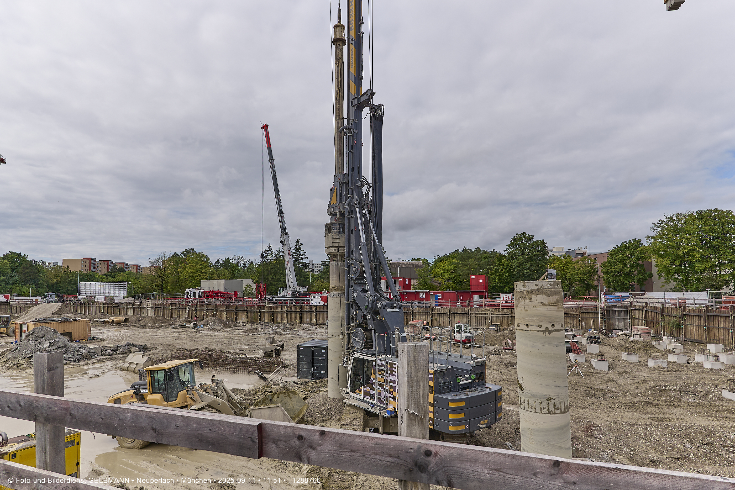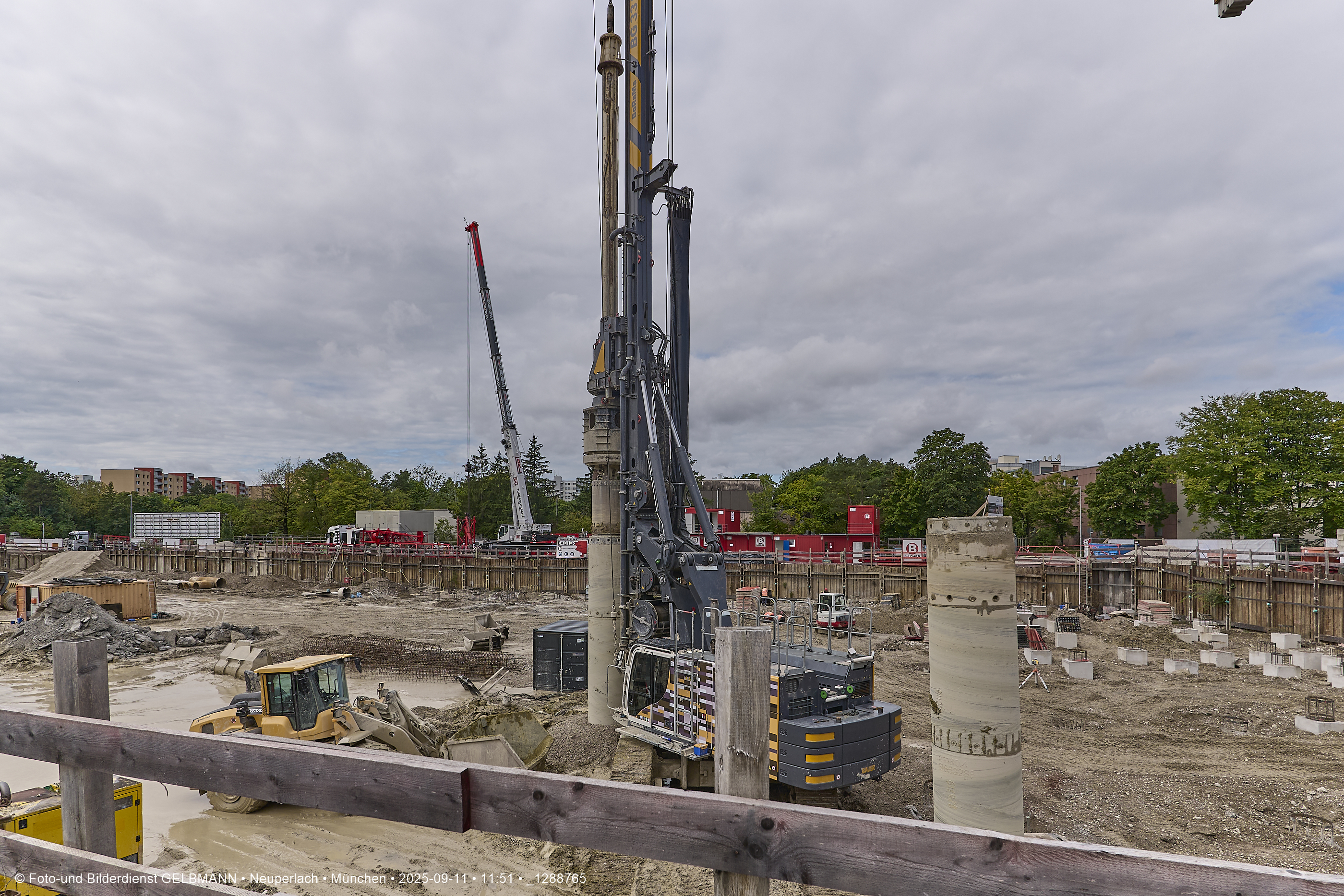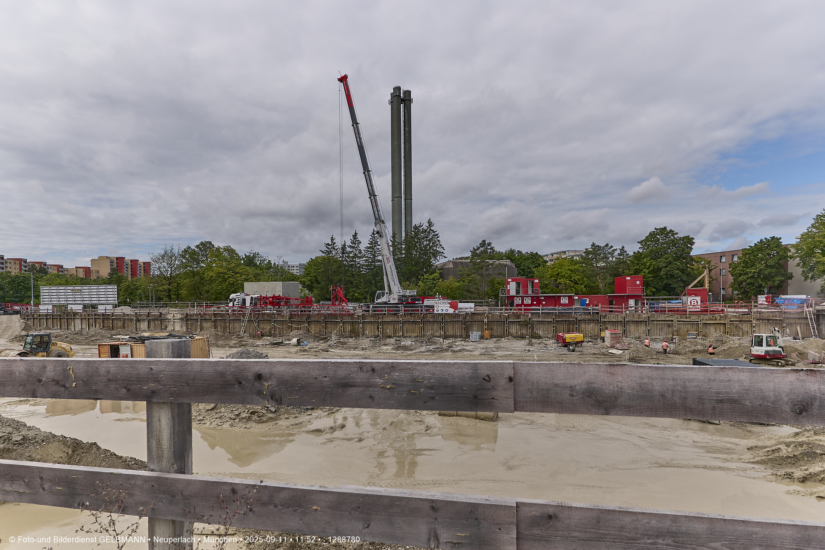 Ein dritter Kran wird an er großen Baugrube des Bauträgers, BayernHeim, errichtet. Mit weit über 100% wird in dieser Baugrube gebaut.