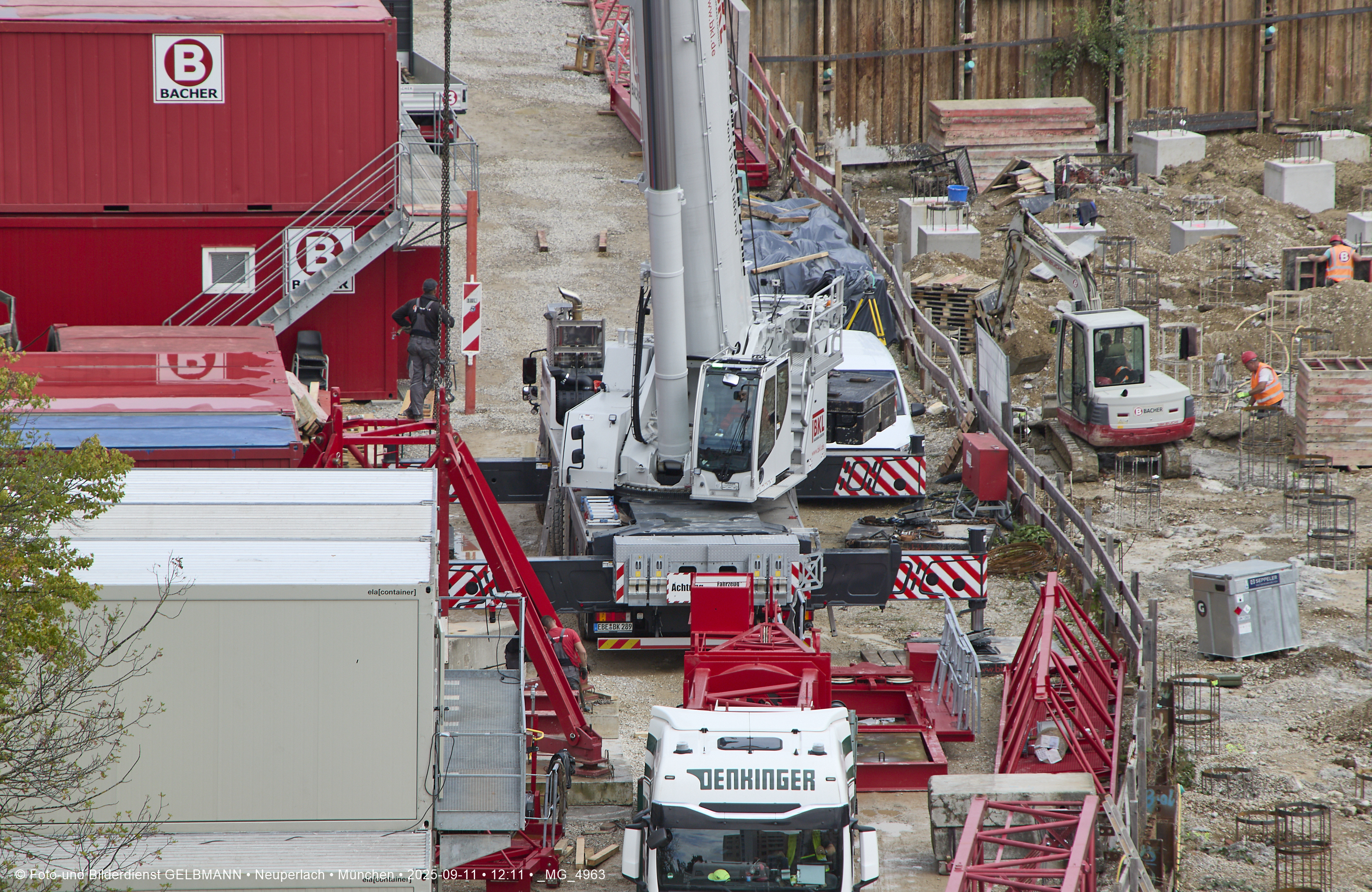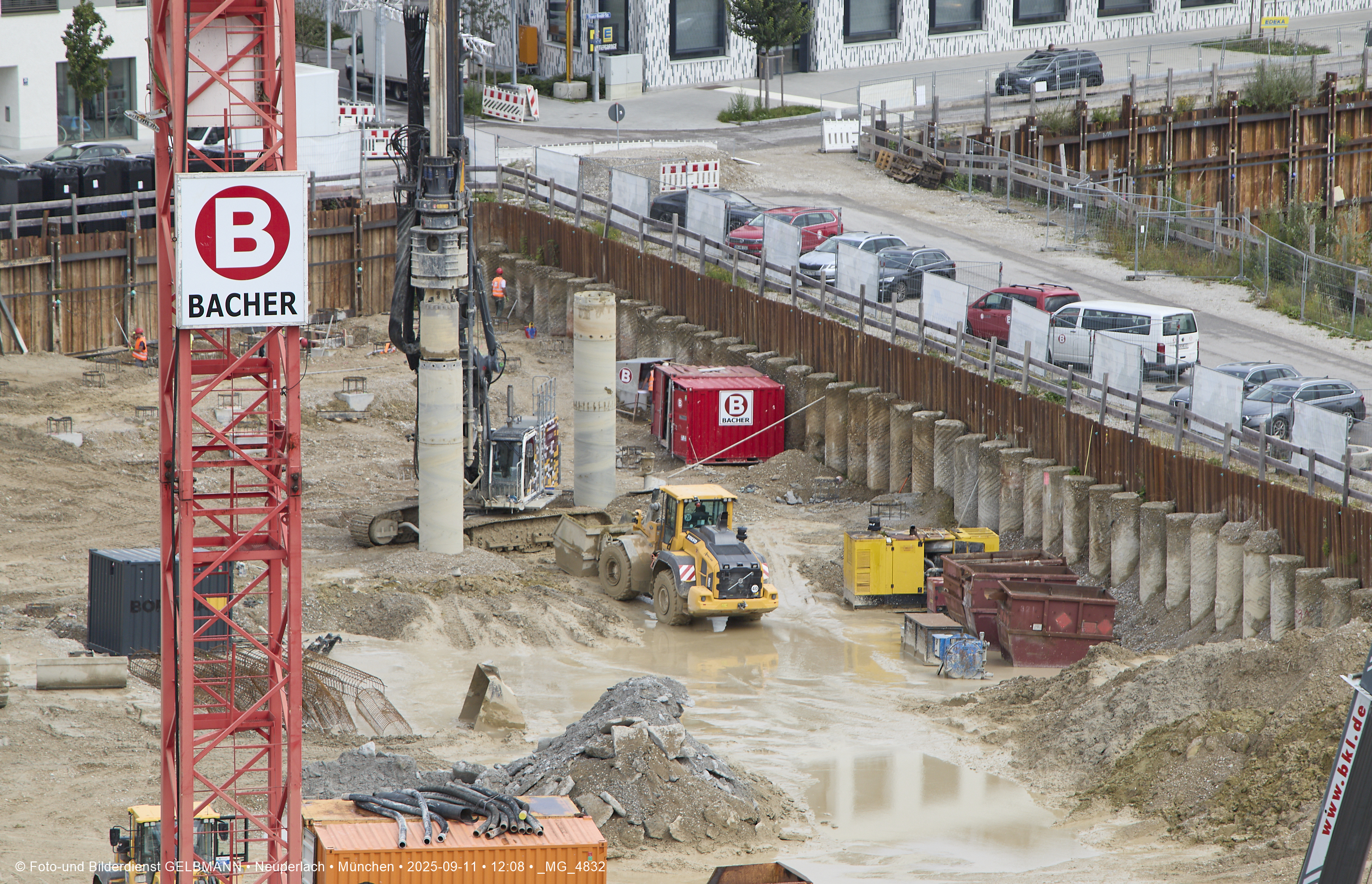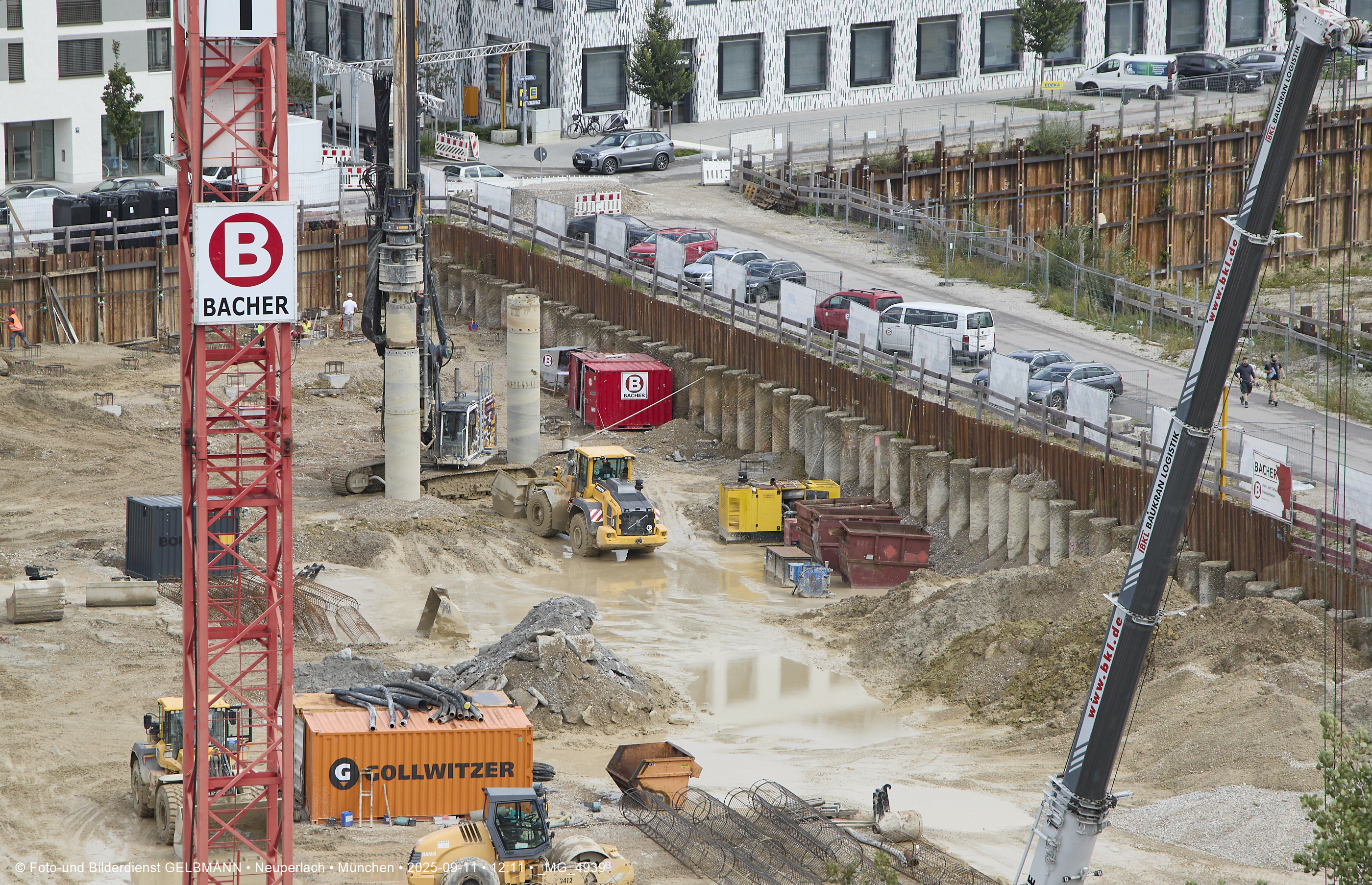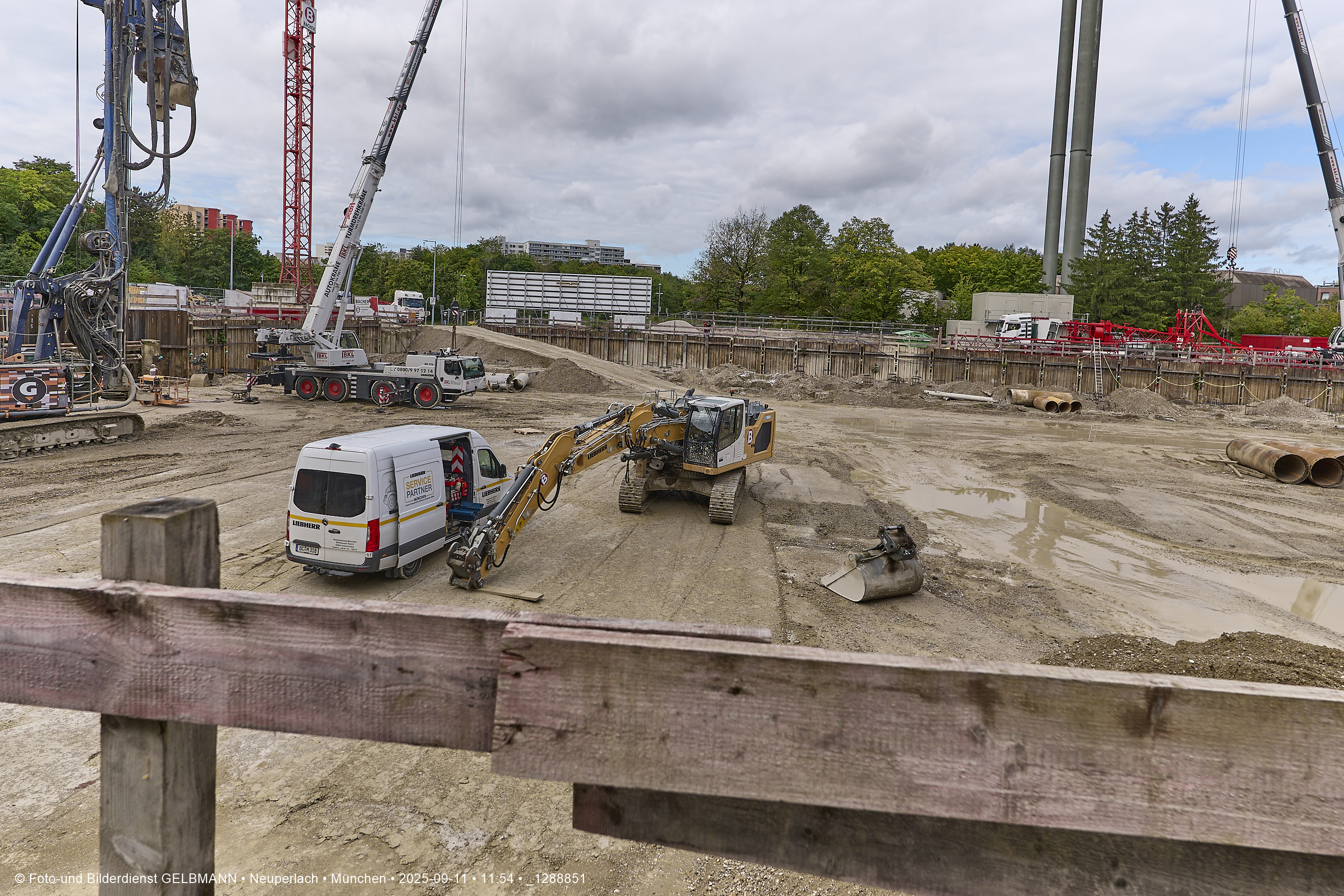 Ein dritter Kran wird an er großen Baugrube des Bauträgers, BayernHeim, errichtet. Mit weit über 100% wird in dieser Baugrube gebaut.