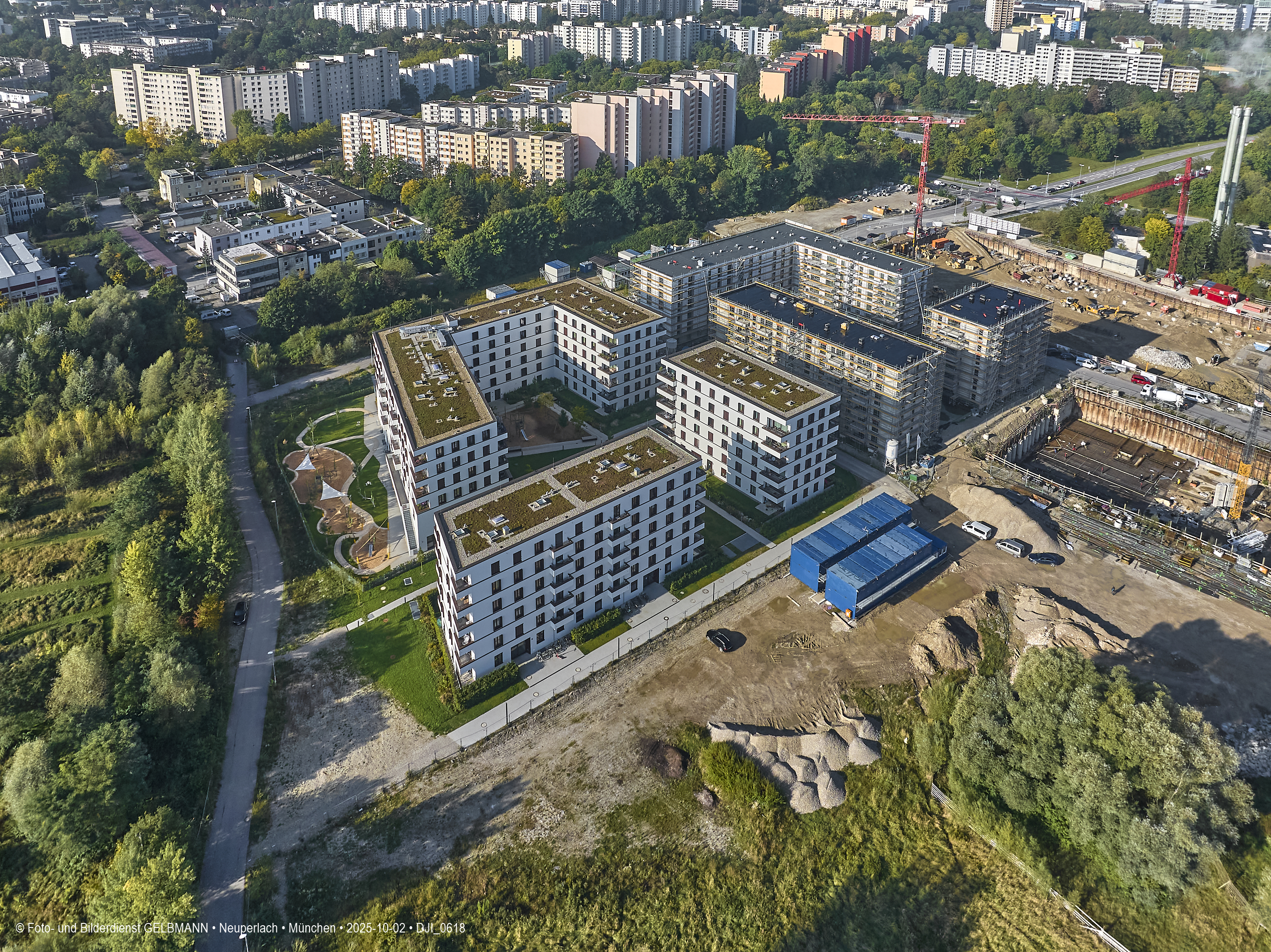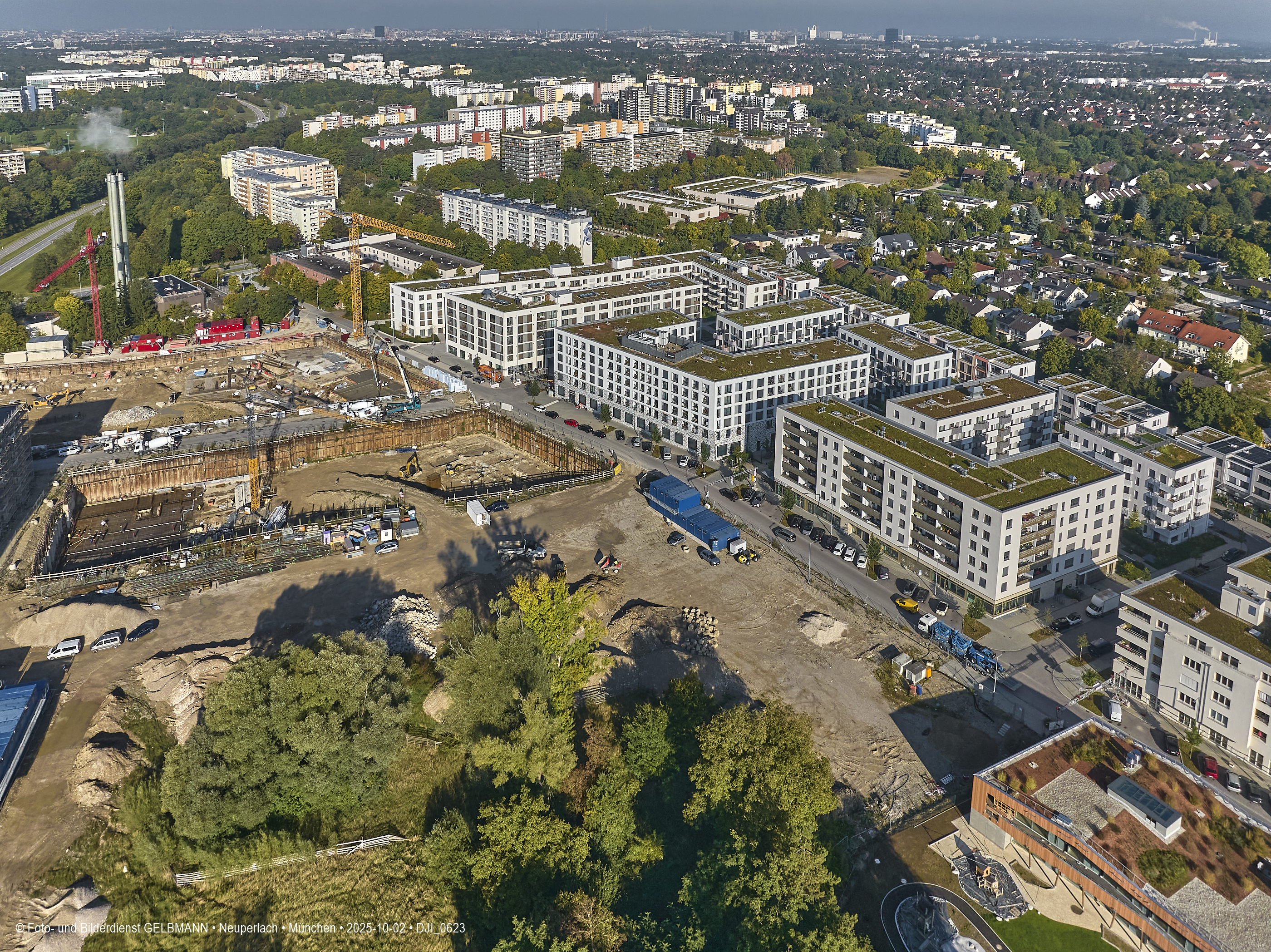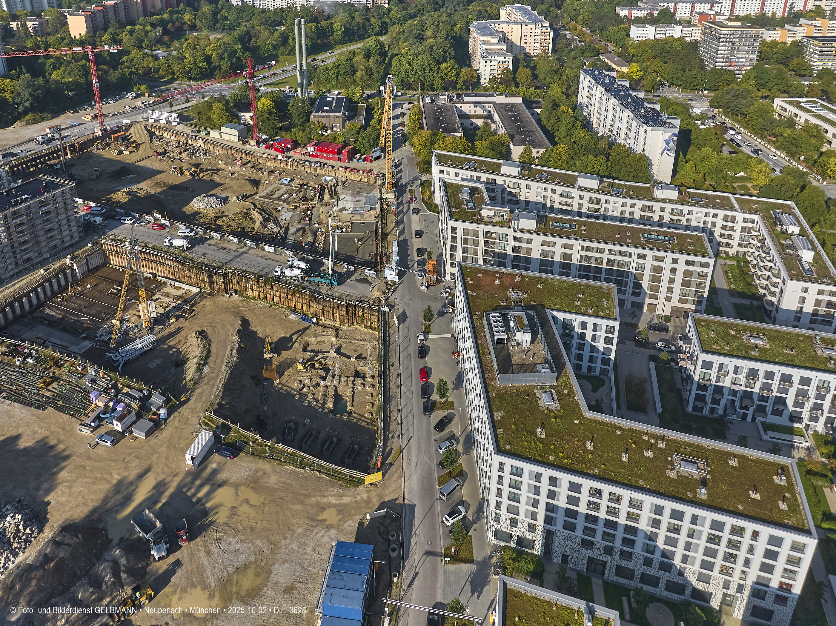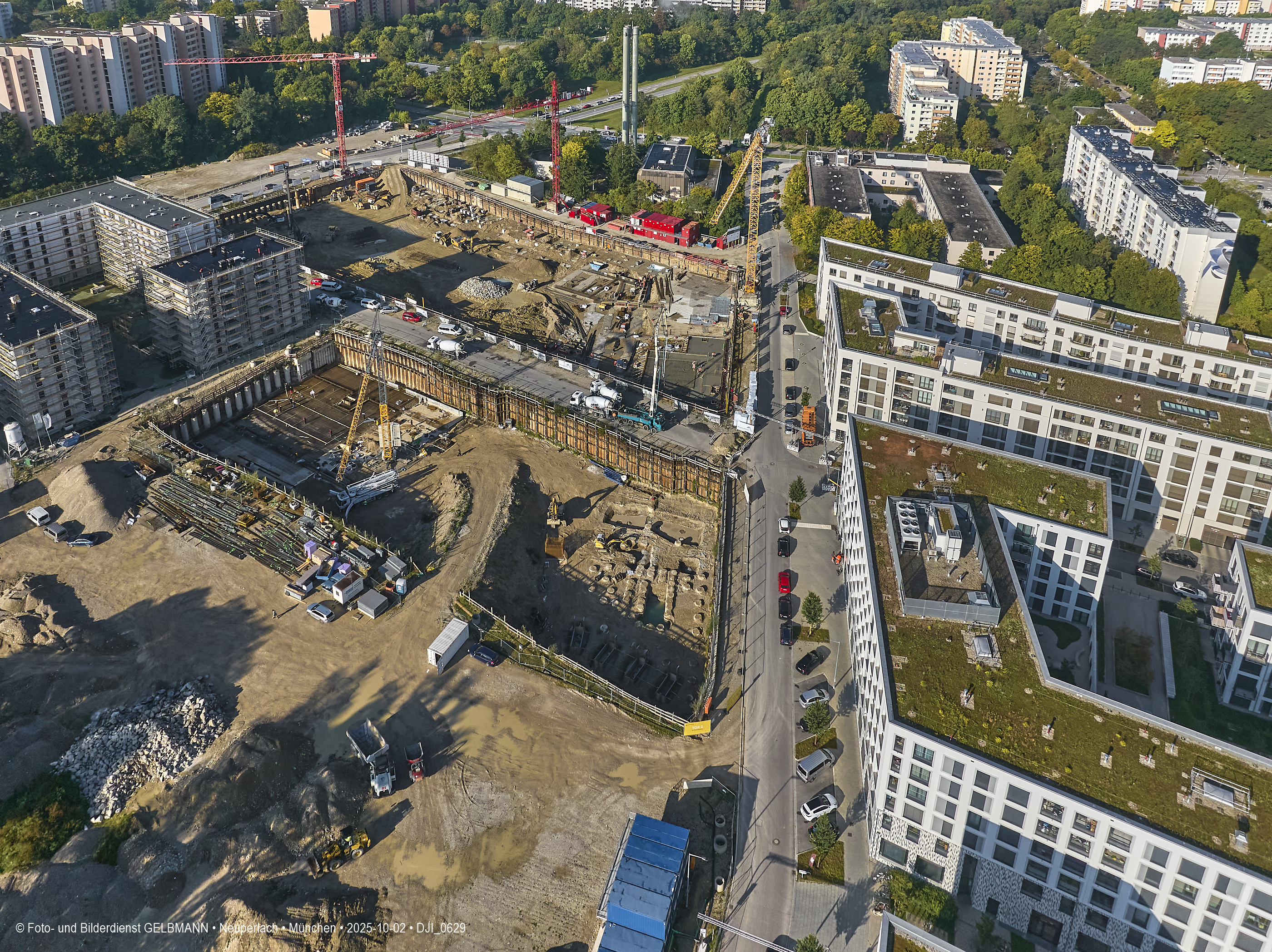 02.10.2025 - Auf der Megabaustelle von BayernHeim in Neuperlach geht es kräftig weiter.