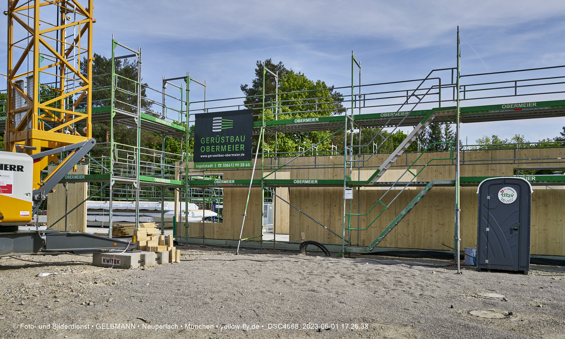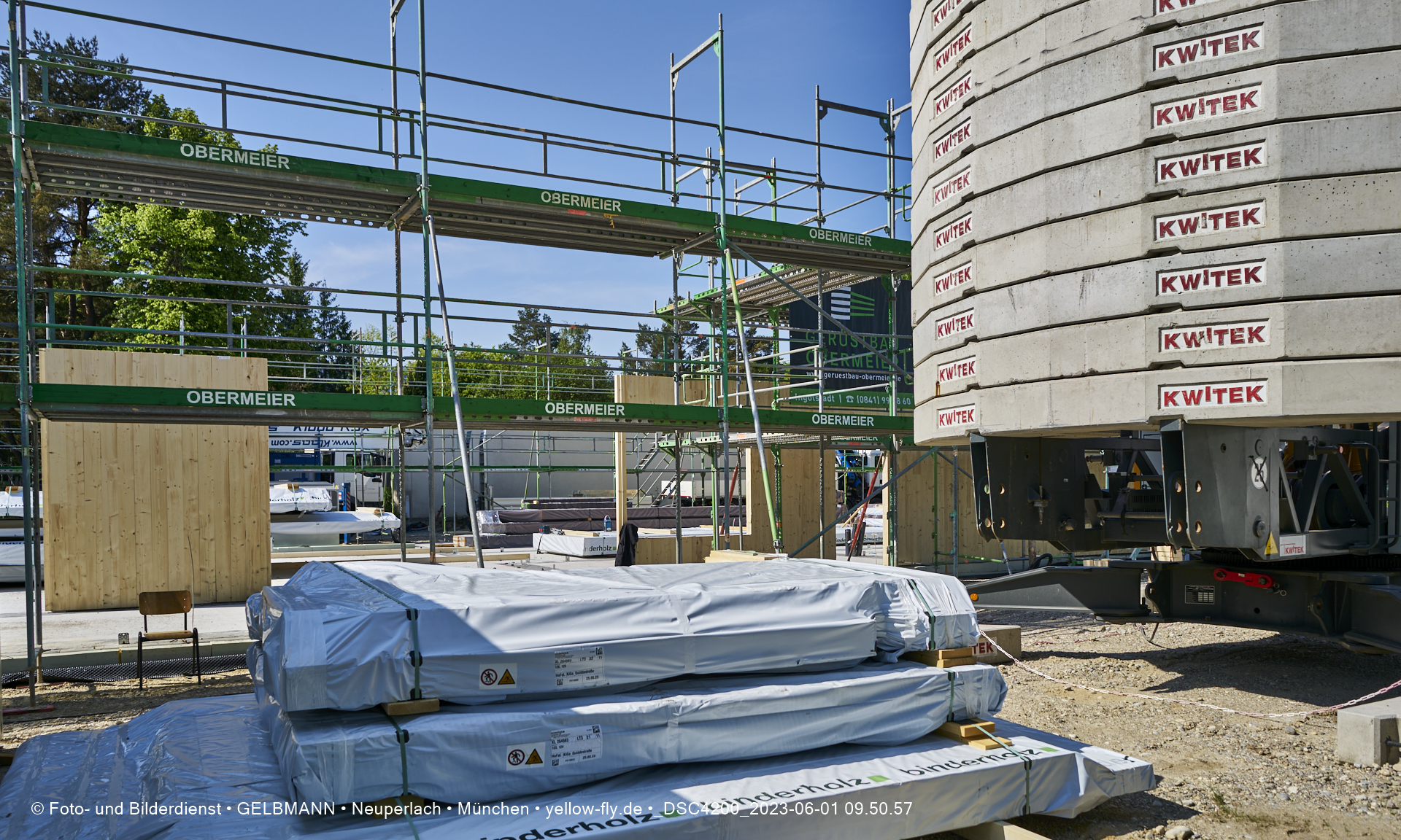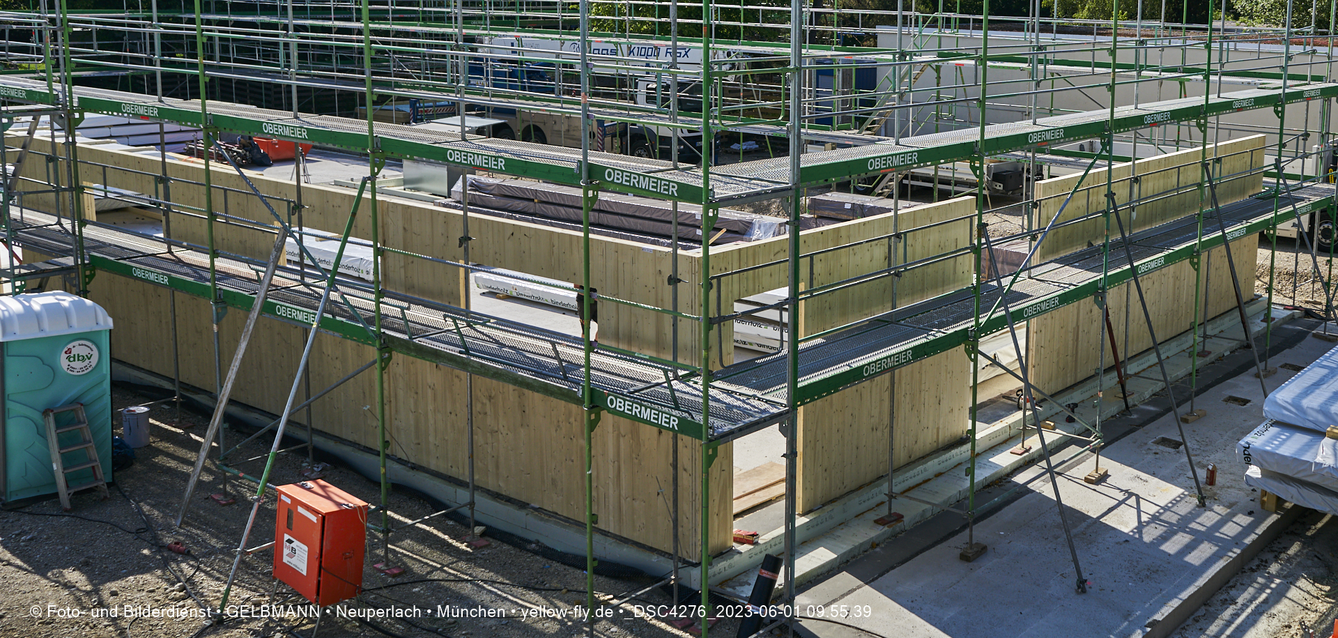 Diese Teile werden aus Fertigelementen zusammengesetzt. Daher ist auch schon das Gerüst aufgestellt worden, damit die Wandelemente von außen miteinander verbunden werden können. Was ich bisher sehen konnte, hat mir sehr gut gefallen.