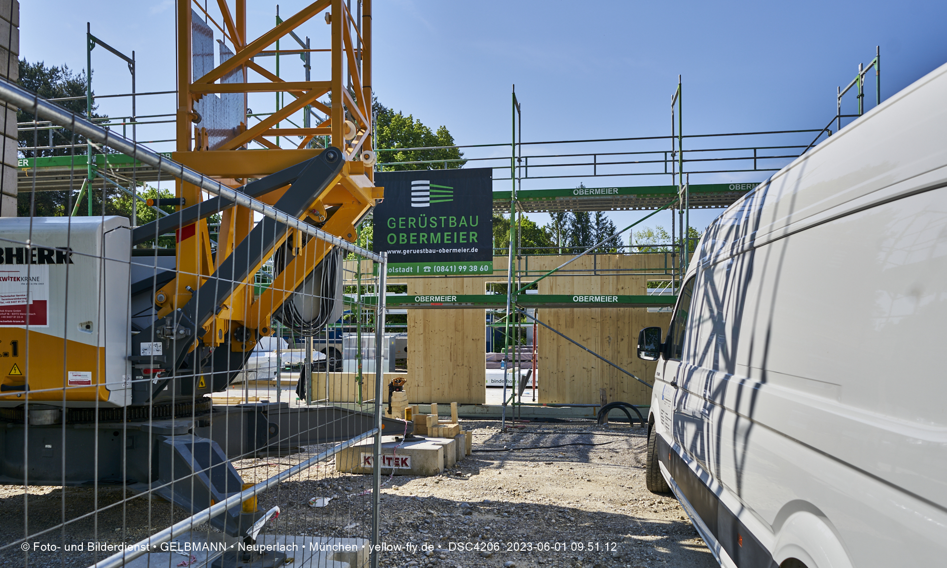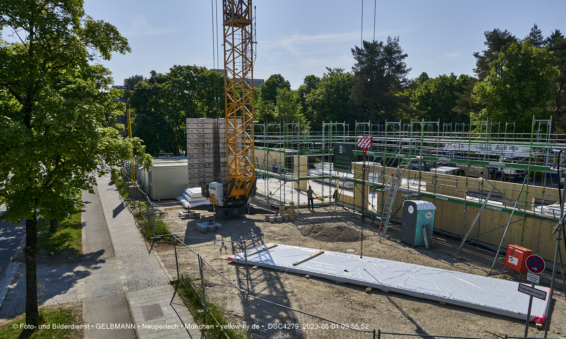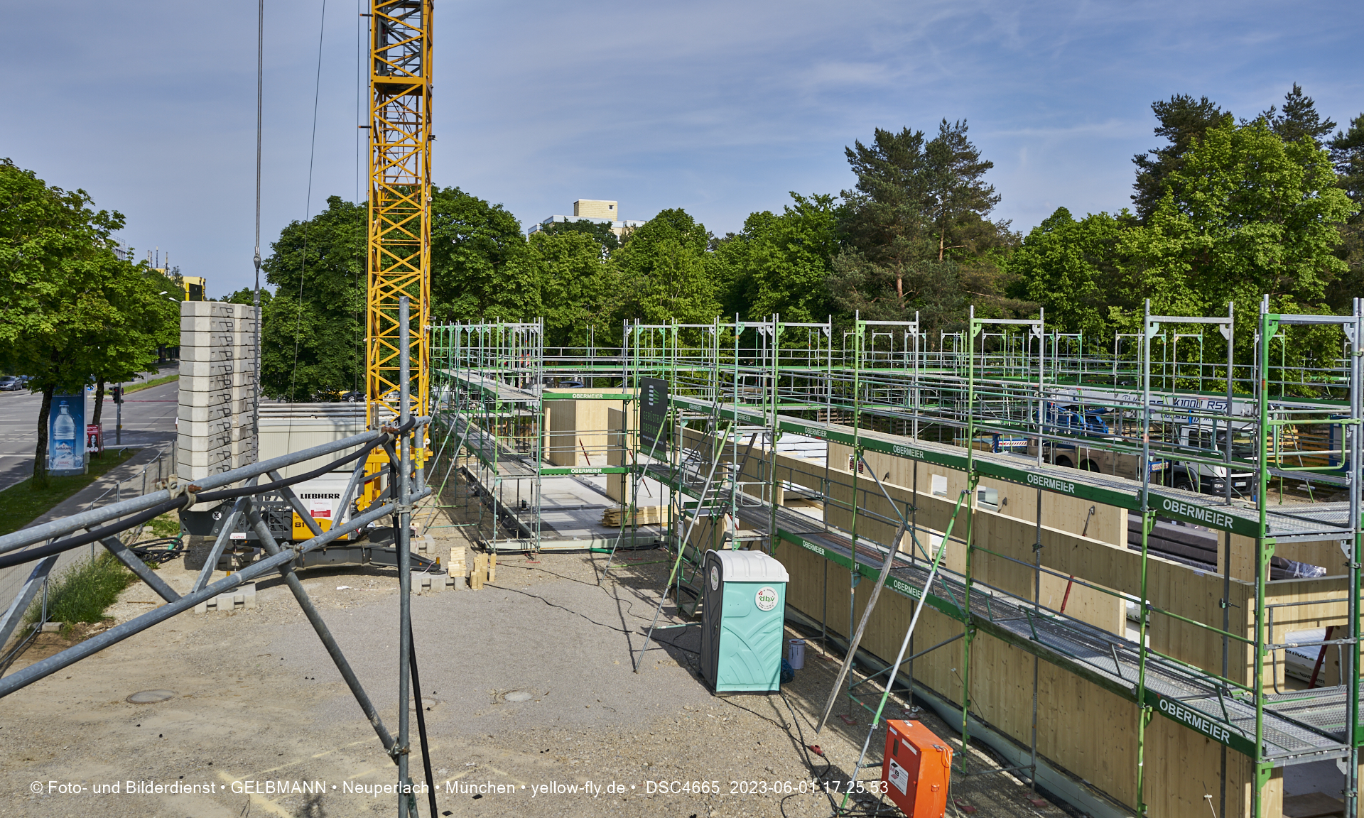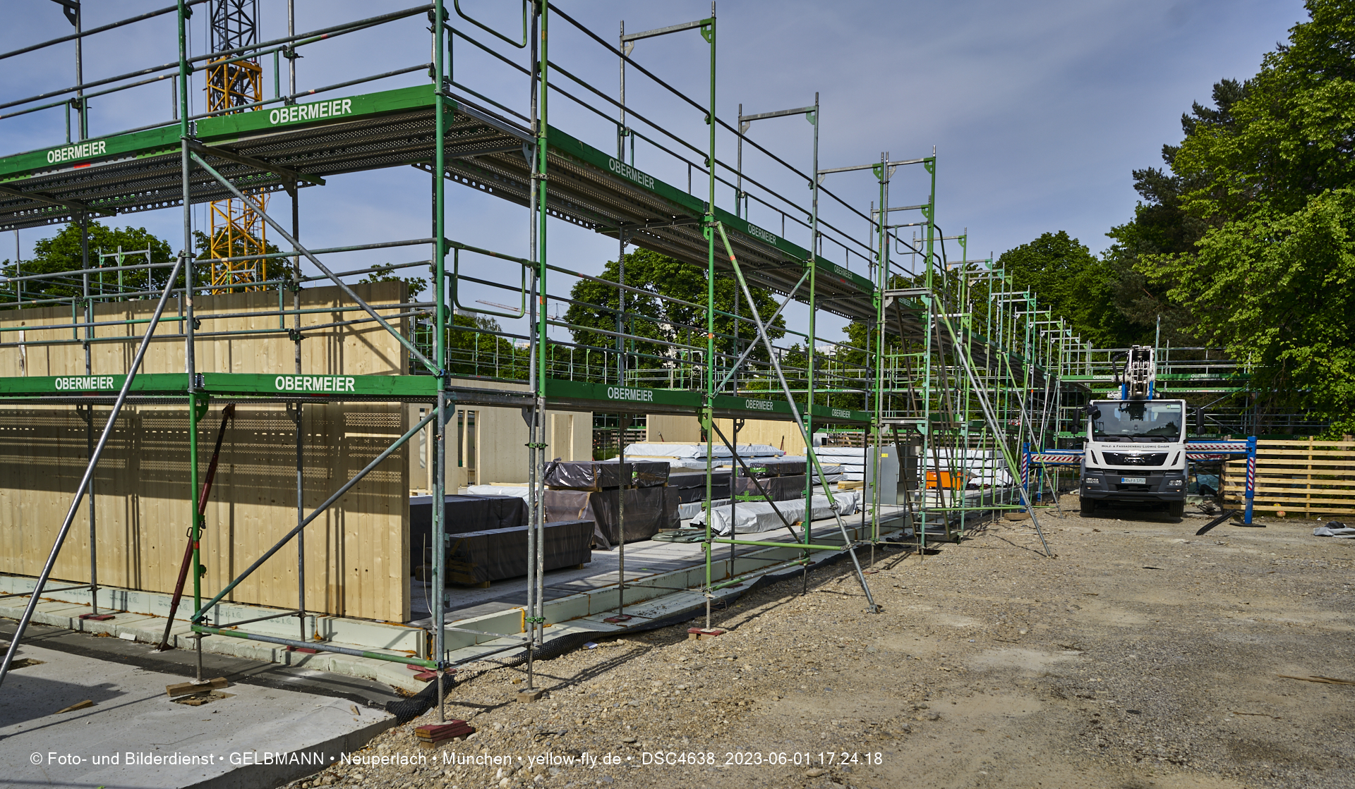Diese Teile werden aus Fertigelementen zusammengesetzt. Daher ist auch schon das Gerüst aufgestellt worden, damit die Wandelemente von außen miteinander verbunden werden können. Was ich bisher sehen konnte, hat mir sehr gut gefallen.